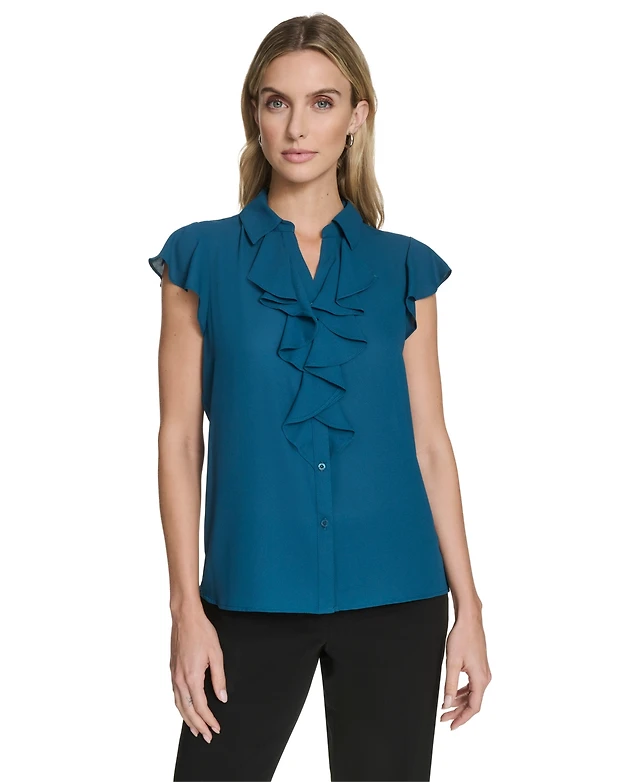 Calvin Klein Women's Solid Cap Sleeve Ruffle Top