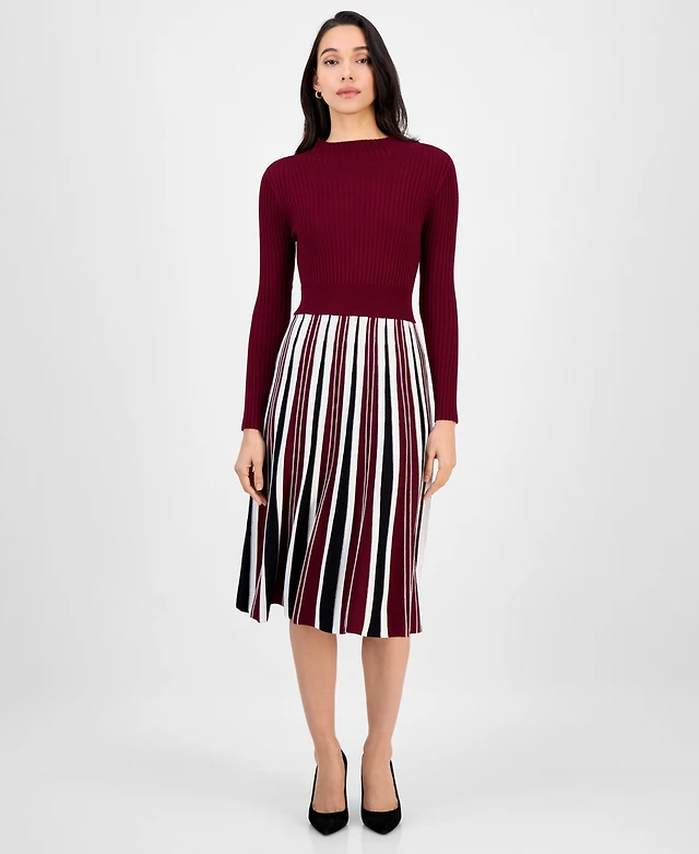 Connected Plus Knit Long-Sleeve Tuck-Front Fit & Flare Dress