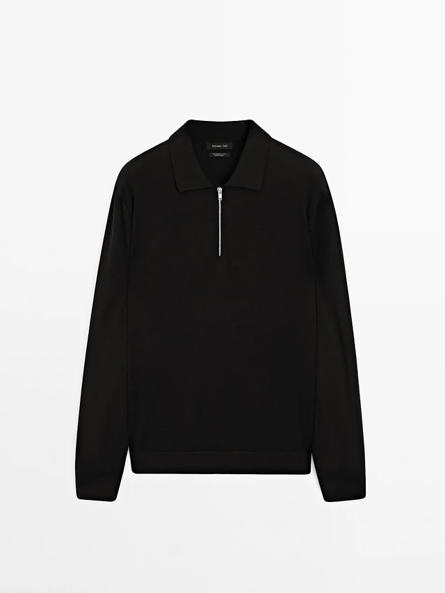 Mango Men's Zipper Openwork Knitted Polo Shirt