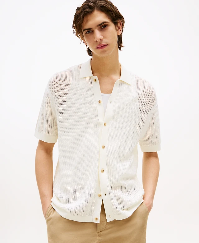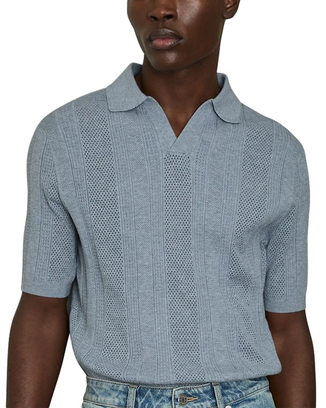 Mango Men's Openwork Knitted Cotton Polo Shirt
