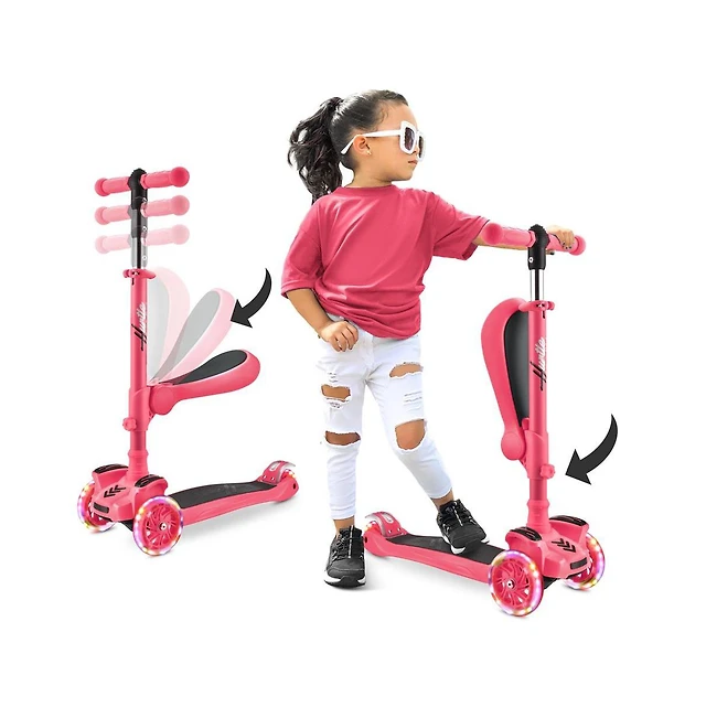 3 Wheel Scooter for Kids with Foldable Seat, Adjustable Handlebar Height, Lean-to-Steer Ride On Toy for Kids Ages 2+, Light-Up Led Wheels, Wide Anti S