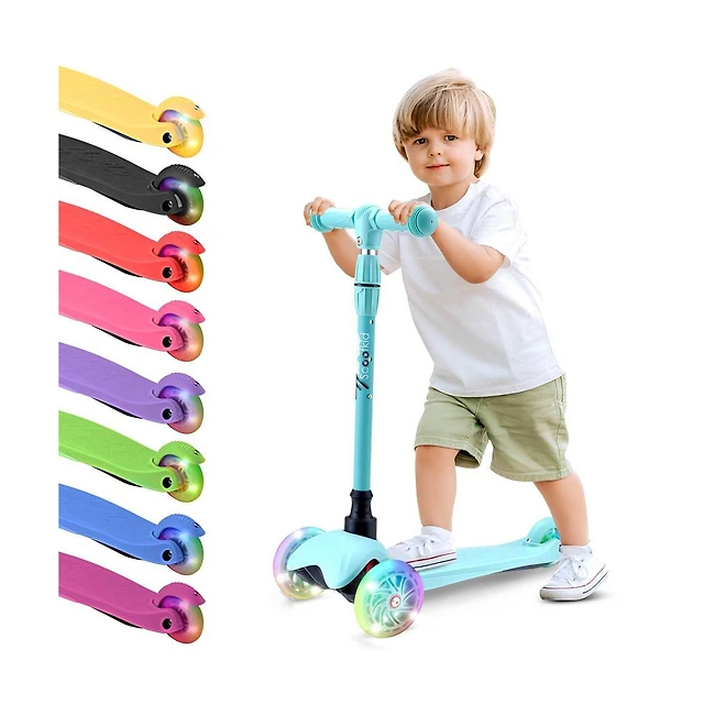 Lifemaster 3 Wheel Kids Scooter With Multi Color Lights On Deck Wheels 5 Height Handlebar Wide Anti Slip Deck Child Safety Certified Boys Girls Ages 3 Supports Up To 150 Lbs Aqua Yellow