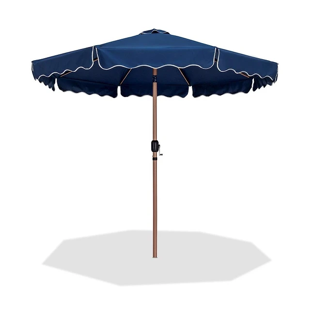 Meridian Furniture Amalfi Navy With Cream Piping Fabric Patio Umbrellas