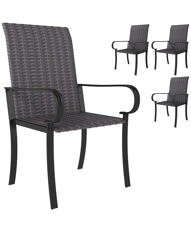 Outsunny Set of 4 Outdoor Wicker Dining Chairs with Armrests,