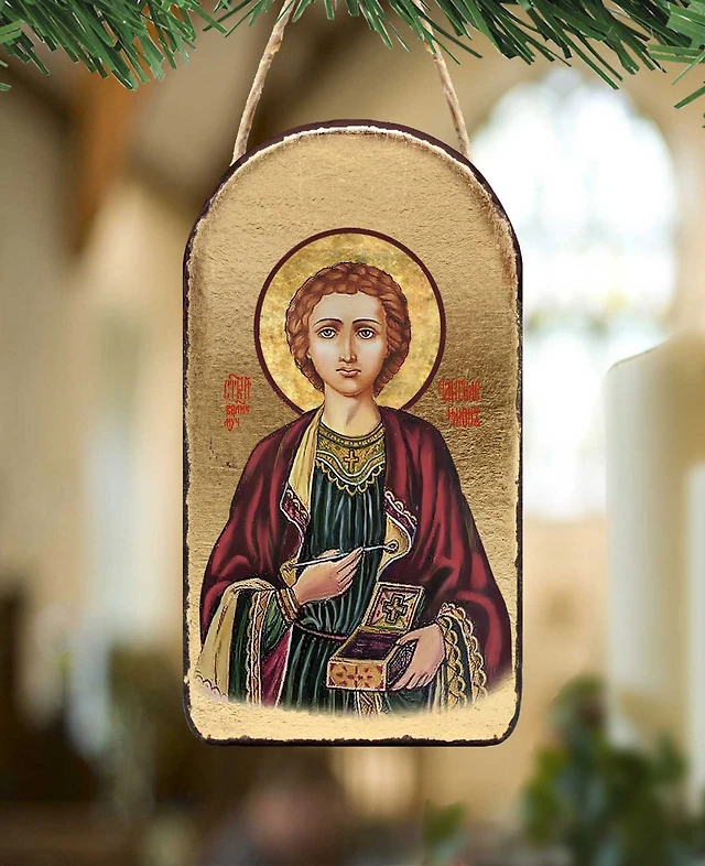 G.DeBrekht Saint Panteleimon Wooden Greek Christian Orthodox Icon Ornament