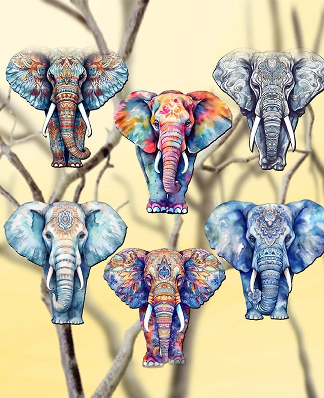 Designocracy Holiday Wooden Clip-On Ornaments Enigmatic Wolves Set of 6 G. DeBrekht
