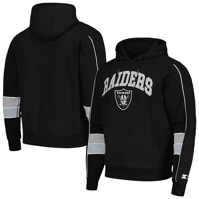 Men's Starter Black Las Vegas Raiders Captain Pullover Hoodie