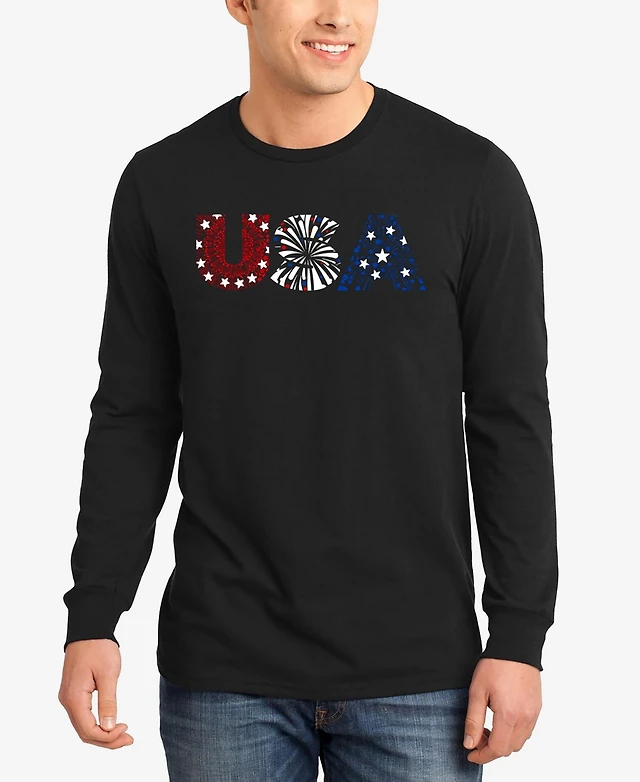 La Pop Art Men's America Rocks Word Long Sleeve T-Shirt