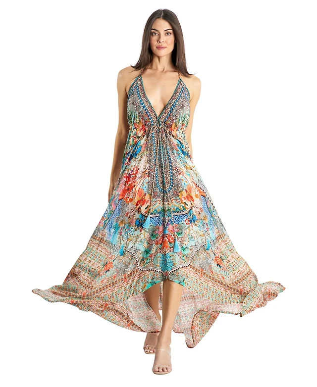 La Moda Clothing Women's Maxi Tribal Print Halterneck Dress