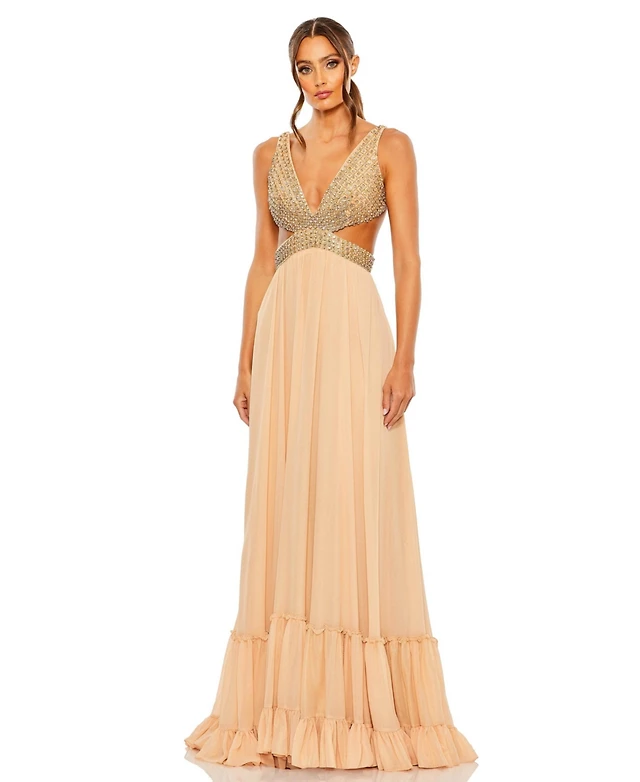 Mac Duggal Women's Lace Up Rhinestone Embellished Cut Out Gown