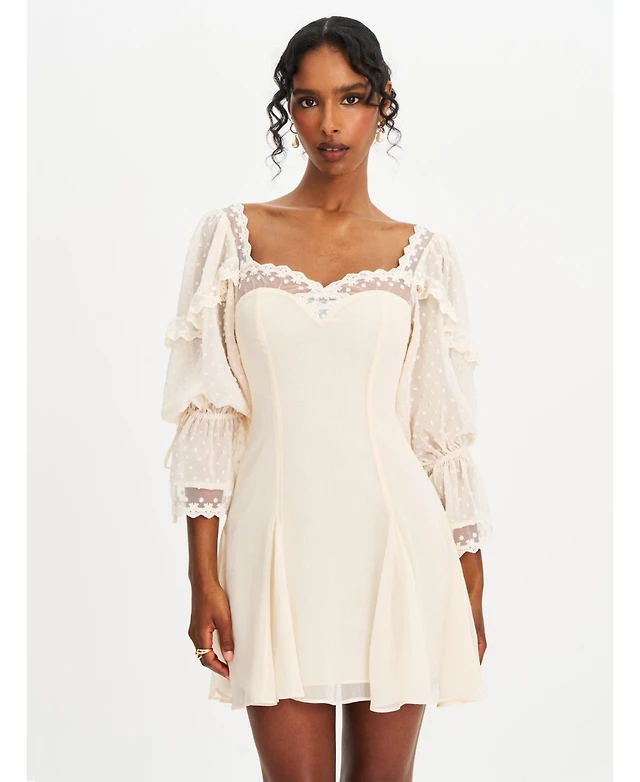 Miss Circle Women's Sacha White Lace Drop Waist Corset Puffy Mini Dress