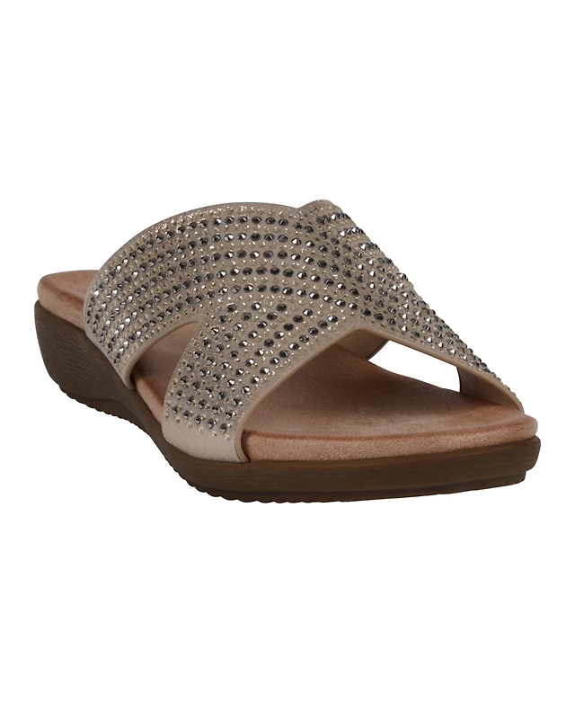 Smash Shoes Women's Charlotte Gold Toe Strappy Flat Sandals - Extended Sizes Available