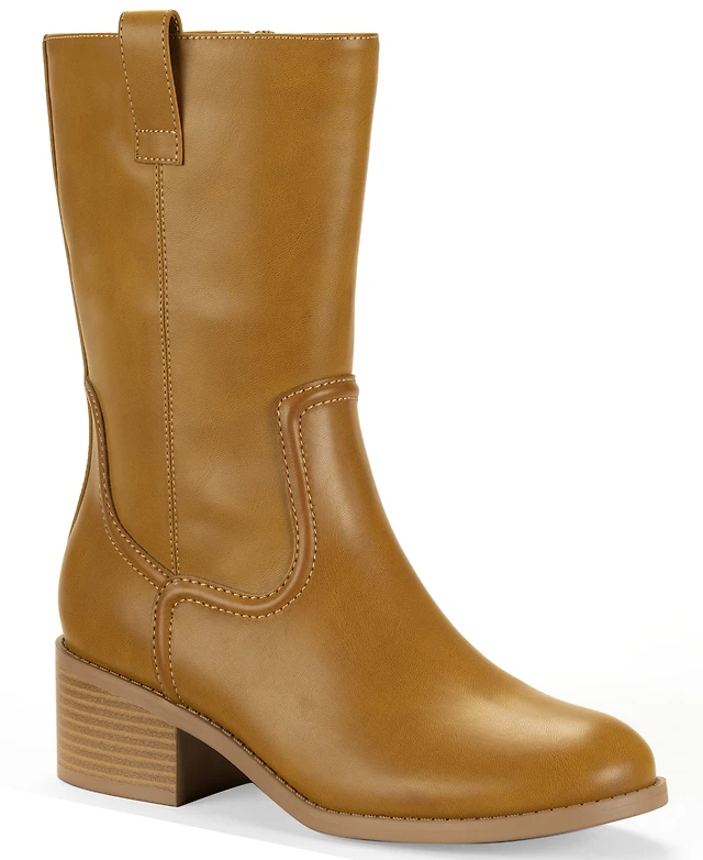 SPLIT LEATHER KITTEN HEEL BOOTS