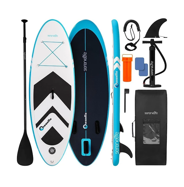 Free-Flow Welded Inflatable Kids Stand-Up Paddle-Board with Single-Action Hand Pump, 3-Shaft Aluminum Paddle (Black)