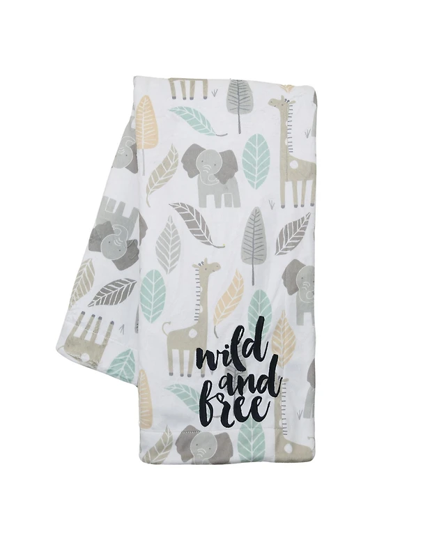 Lambs & Ivy Jazzy Jungle White Fleece Safari Animals Soft Baby Blanket