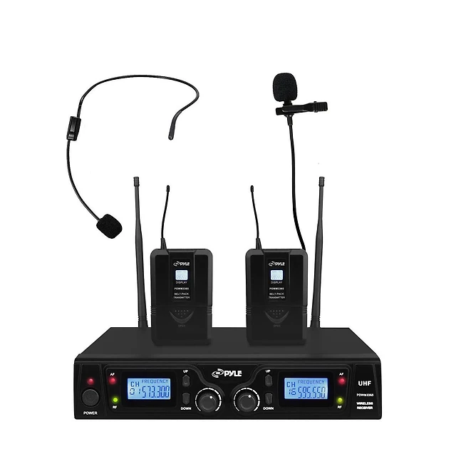 Pyle Uhf Wireless Microphone System Kit, Includes Headset Mic, Lavalier Mic & Beltpack Transmitter