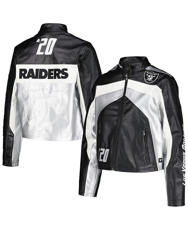 Women's The Wild Collective Black Las Vegas Raiders Faux Leather Full-Zip Racing Jacket