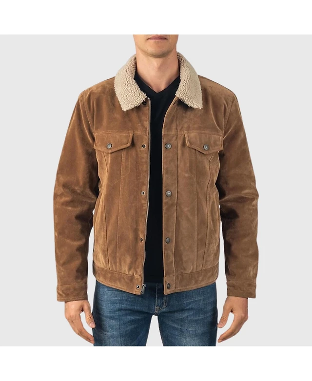 Alpine Swiss Men's Aaron Fitted Trucker Jacket Sherpa Collar Faux Leather Casual Coat