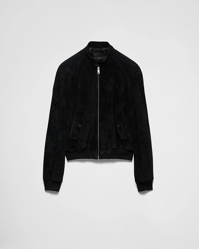 Men's jacket travertine-colored nubuck leather with wool-blend sleeves and back