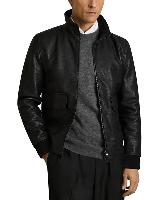 Slim Fit Reed Pebble Grain Leather Jacket