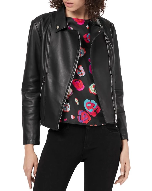 HIGH COLLAR FAUX LEATHER BOMBER JACKET