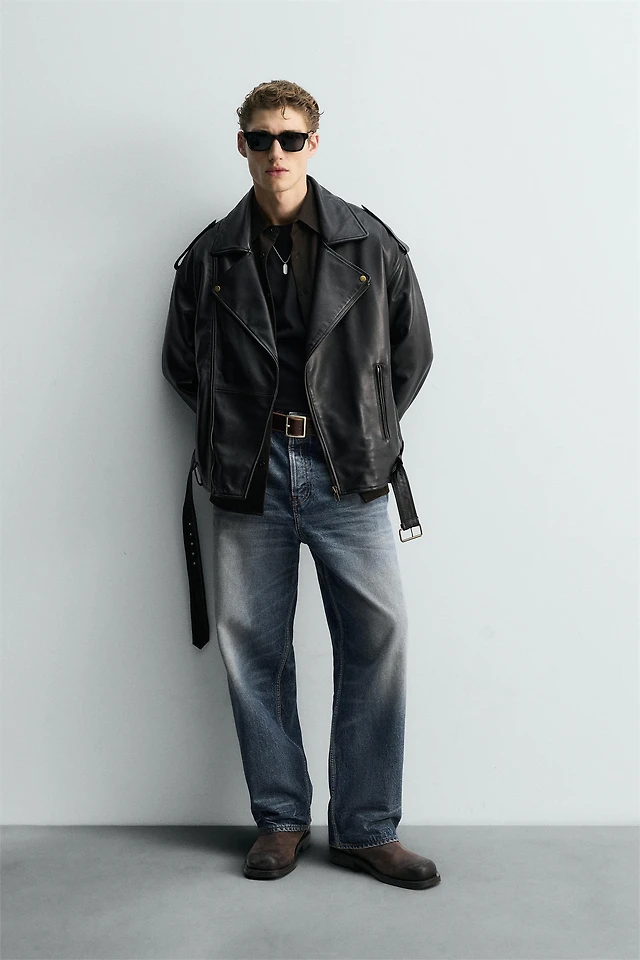FAUX LEATHER BIKER JACKET WITH BUCKLES