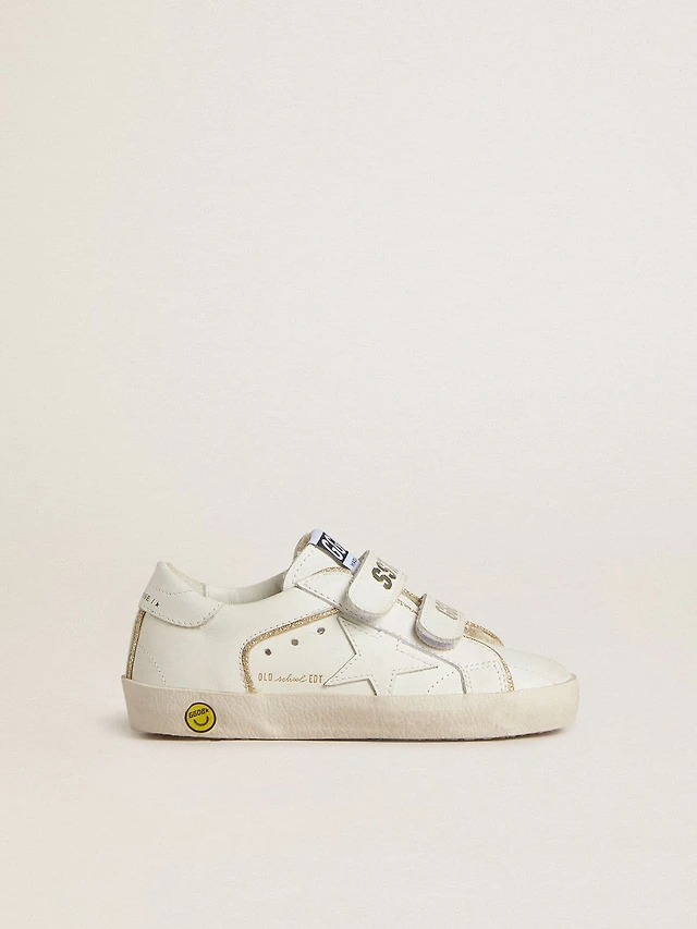 May Teen white leather with gold glitter star and silver heel tab