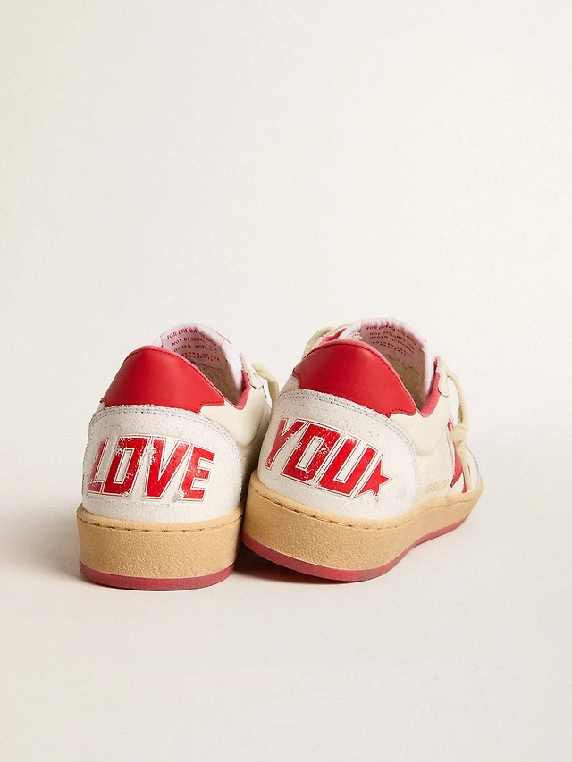 Women's Ball star white nappa with bright blue metallic leather and heel tab