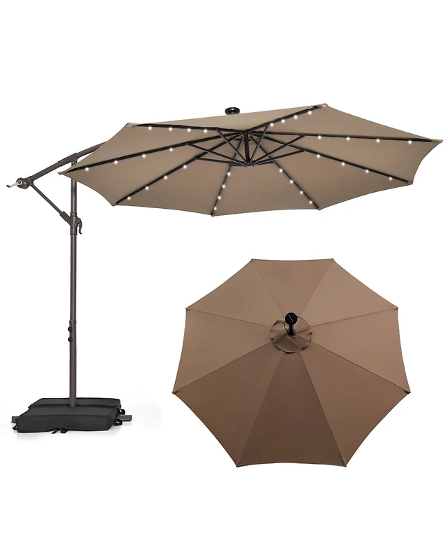 Gymax 10ft Solar Patio Umbrella Outdoor Offset Hanging w/ 40 Led Lights