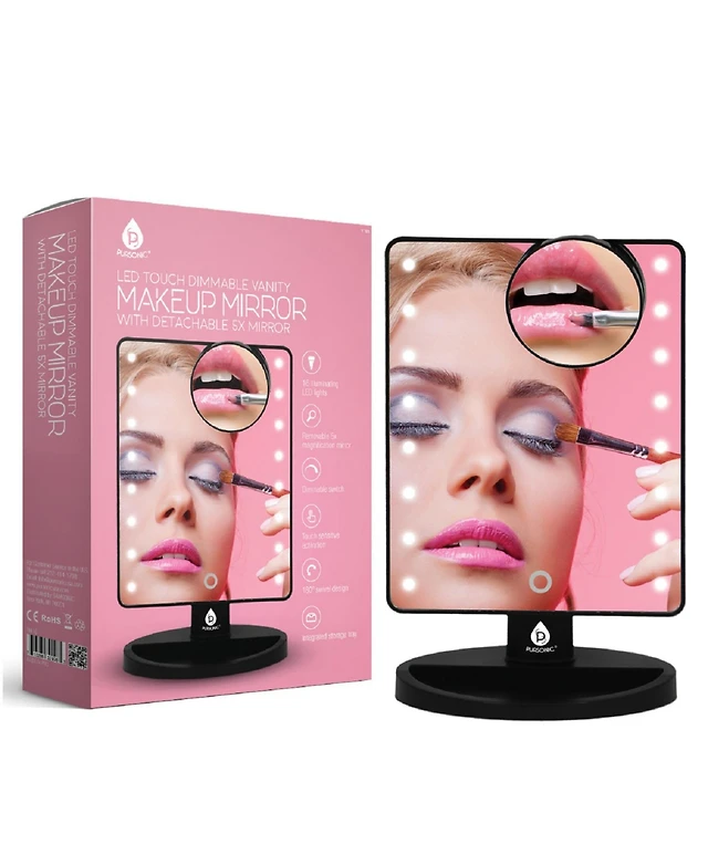 Pursonic Him's and Her's Pursonic Led Lighted Vanity Makeup Mirror Bundle – Black & White Set with 5X Magnifying Mini Mirrors