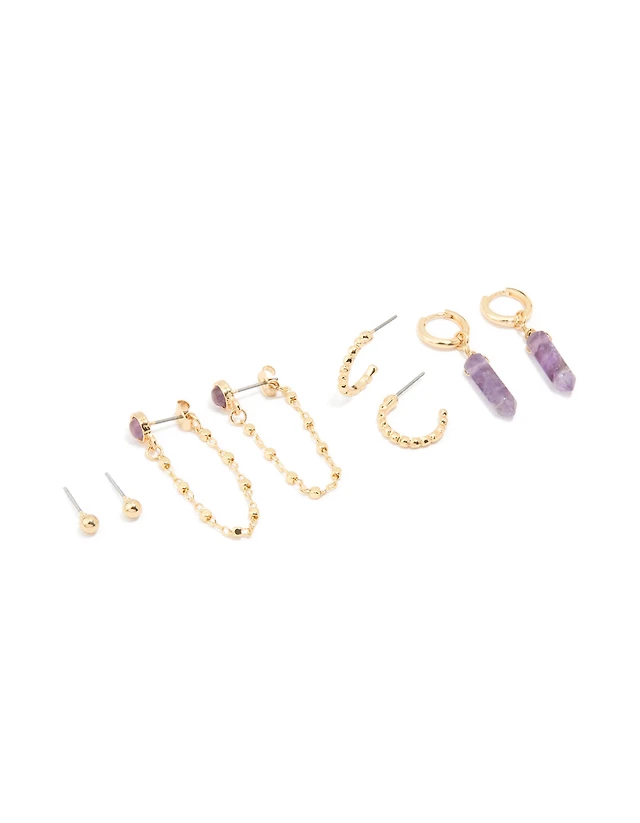 Gold Plated Cubic Zirconia Dainty Chain & Mixed Earrings 5-Pack