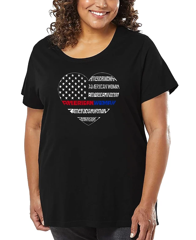 La Pop Art Plus American Woman Word V-Neck T-Shirt