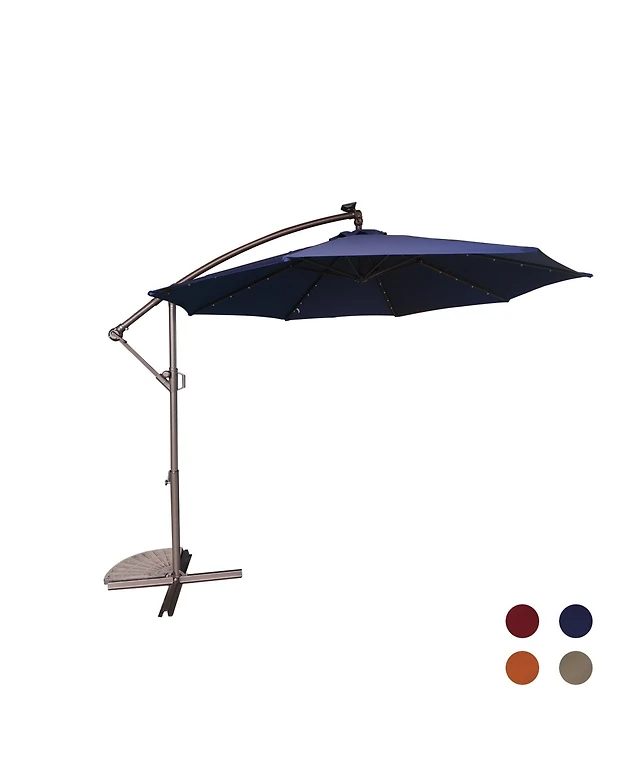 Outdoor Steel Cantilever Offset Patio Umbrella with Solar Led Lights, Air Vent, Crank, and Base - 9'