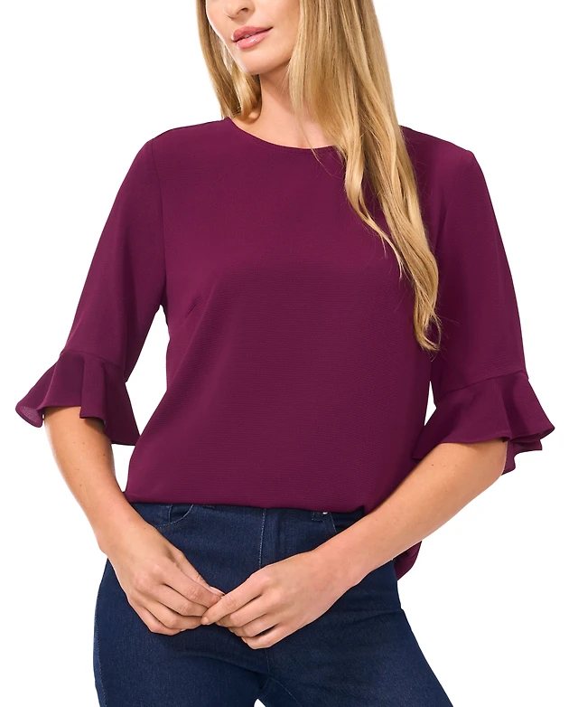 CeCe Women's Ruffled-Cuff 3/4-Sleeve Crew Neck Top