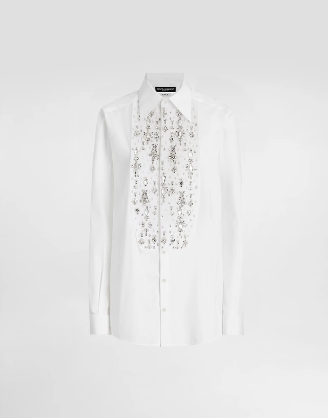 Cotton tuxedo shirt with rhinestone-embroidered front