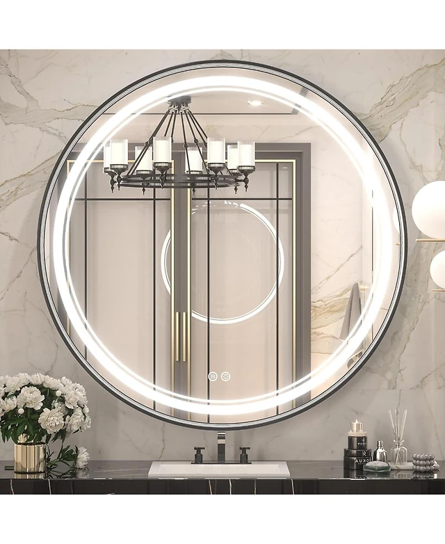 Wisfor Round Circle Lighted Bathroom Mirror Anti Fog Vanity Mirror Stepless Dimming