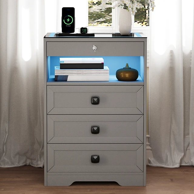 gaomon Vanity Desk with Mirror and Led Lights, Makeup Vanity Desk with Sliding Lighted Mirror, Power Outlet, Dressing Table with 4 Drawers
