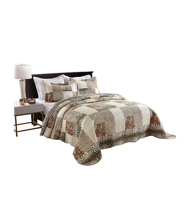 MarCielo 3 Piece Quilted Bedspread Quilt Set Lightweight Bedspread Cheetah