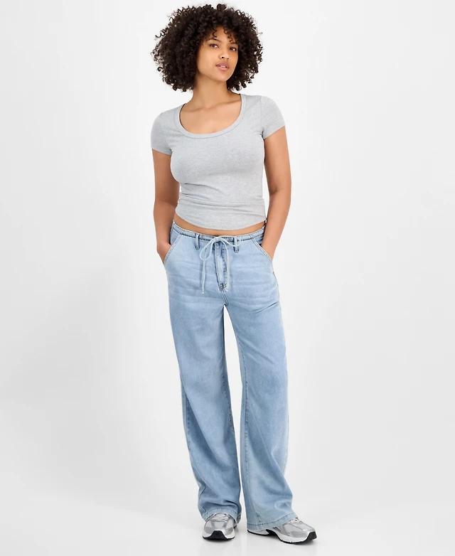 ellos Women's Lightweight Wide-Leg Crop Jeans