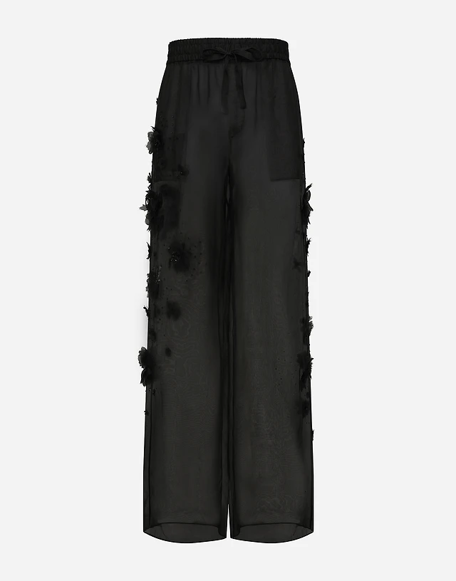 Silk organza jogging pants with embroidery
