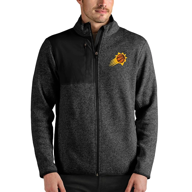 Men's Antigua Heathered Black Phoenix Suns Fortune Full-Zip Jacket