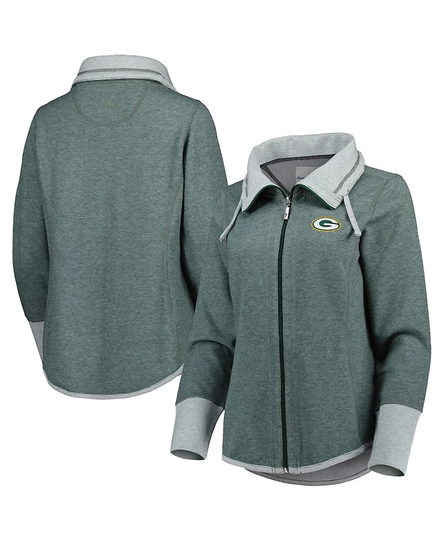 Women's Tommy Bahama Heathered Green Green Bay Packers Sport Sun Fade Full-Zip Sweatshirt