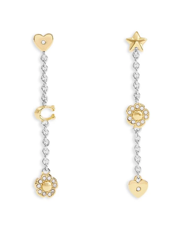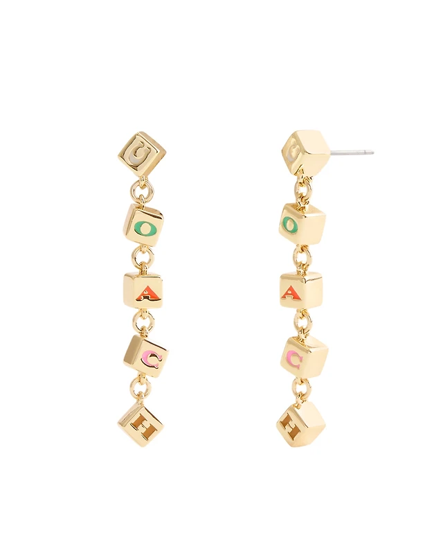 Coach Gold Jumbled Signature Logo Link Linear Earrings