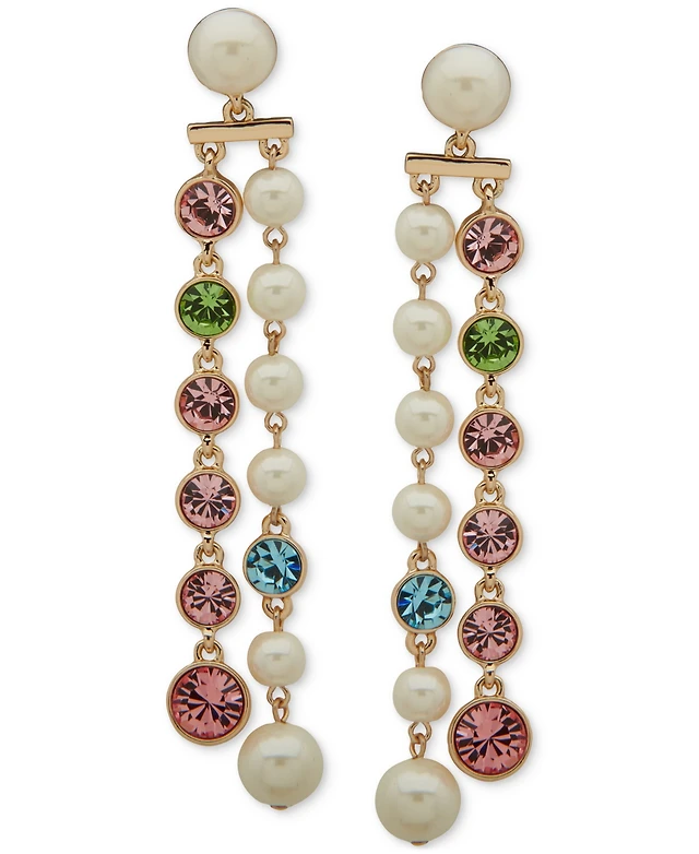 Anne Klein Imitation Pearl and Glass Stone Gold-Tone Tassel Linear Earrings