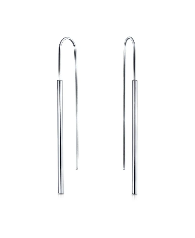 Bling Jewelry Modern Geometric Linear Long Bar Drop Ear Sterling Silver Double Bead Ball Dangle Earrings 610 Mm Bead