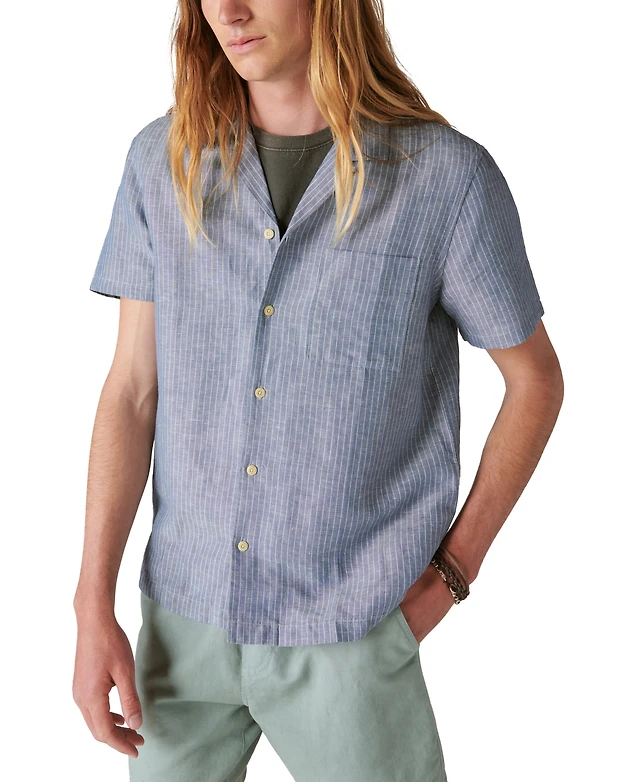 Cubavera Men's Short Sleeve Striped Panel Button-Front Linen Camp Shirt