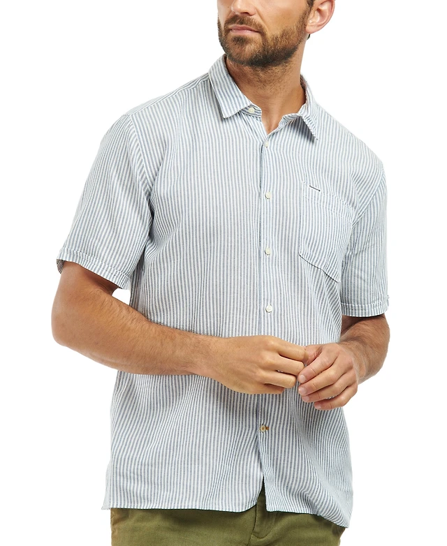 Barbour Men's Midfield Relaxed Fit Short Sleeve Linen Tartan Button-Front Shirt