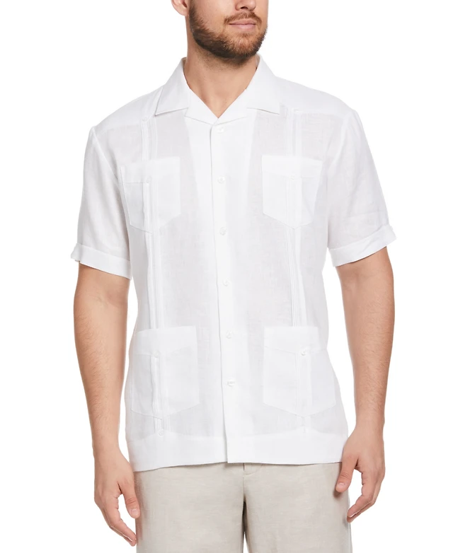 Cubavera Men's Short Sleeve Panel Button-Front Linen Camp Shirt