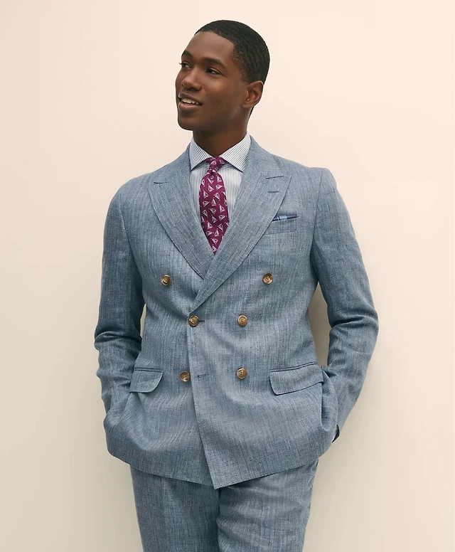 Slim Fit Linen-Blend Herringbone Suit Jacket