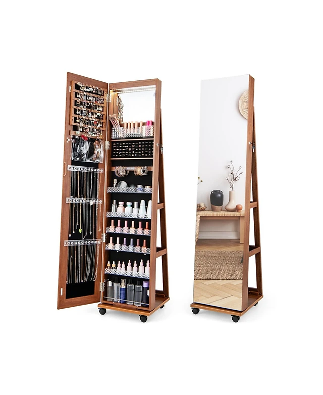 Gouun Lockable 360° Swivel Jewelry Cabinet with Full-Length Mirror Led Lights